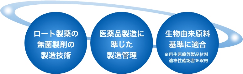 日本語 中国(简体) English 間葉系幹細胞培養用AOF培地 商品名:R:STEM Medium for hMSC High Growth(Ref. No. EM1-500) 細胞治療製品及び遺伝子治療製品の製造時に使用する補助材料 一般要求事項 R:STEM Medium for hMSC High Growth(Ref. No. EM1-500) 認証された製品は日本国内で製造されたものに限られます ロート製薬オリジナル完全AOF培地「R:STEM」が国内でFIRMマーク認証第一号を取得 5月17日に認証授与式が開催されました。詳細はこちら 血清等に起因するウイルス等のリスクを低減 ヒト・動物由来原料を含まない EVs等による細胞の性質変化のリスクを低減 培地中にEVsを含まない 細胞増殖能の低下等、細胞への毒性を低減 抗生物質を含まない ロットチェックの手間を軽減 化学定義可能な成分を使用しているためばらつきが少ない サプリメントの添加等、前処理の手間を軽減 Ready-to-use培地で解凍後すぐに使用可能 AOF培地について 培地製造に際する各工程の品質を徹底管理 特長 ISO 20399を適用規格とするFIRMマーク認証を取得 再生医療等製品材料適格性確認書取得済み ヒト・動物由来原料不含の無血清培地 初代培養可能 hMSCの優れた培養性能(脂肪由来・臍帯由来) ロット間差が小さい 培地中のEVs量が検出限界以下 抗生物質を含まない Ready-to-use培地で解凍後すぐに使用可能 製品形態 容量:500mL 凍結品:保管温度 ≦-20℃ ※本製品は研究用であり、診断用・臨床用には使用できません。 価格 66,000円(税込) 培地中に含まれるEVs量の測定 結果 R:STEM(EM1-500)中のEVs量は検出限界以下である ピンチアウトで拡大 R:STEM(EM1-500)または市販Xeno-free培地中に含まれるEVs量をCD9 / CD63 ELISA kitにて測定した。 (Mann-Whitney U test, *p<0.05) 細胞培養の安定性 結果 R:STEM(EM1-500)はロット差が小さく細胞培養時のばらつきが最小限に抑えられる ピンチアウトで拡大 ピンチアウトで拡大 脂肪由来hMSCsをR:STEM(EM1-500)3ロットでPassage 2からPassage 4まで培養し、Passage 4の細胞について経時的に算出した細胞集団倍加数(population doubling level: PDL)、細胞倍化時間(population doubling time:PDT)で細胞増殖能を評価した。 脂肪由来hMSCsの細胞増殖試験 結果 R:STEM(EM1-500)は脂肪由来hMSCsを増殖させる ピンチアウトで拡大 ピンチアウトで拡大 脂肪由来hMSCsをR:STEM(EM1-500)または市販AOF培地、市販Xeno-free培地を用いてPassage 2からPassage 4まで連続的に培養し、経時的に算出した細胞集団倍加数(population doubling level: PDL)、細胞倍化時間(population doubling time: PDT)で細胞増殖能を評価し、細胞状態の観察を行った。 (Kruskal-Wallis test, n.s.) ピンチアウトで拡大 脂肪由来hMSCsのヒトMSC関連表面マーカーの解析 結果 R:STEM(EM1-500)で培養した脂肪由来hMSCsは 国際細胞治療学会のヒトMSCの基準を満たしている ピンチアウトで拡大 ピンチアウトで拡大 脂肪由来hMSCsをR:STEM(EM1-500)でPassage 2からPassage 4まで培養し、Passage 4の細胞についてflow cytometryを用いて国際細胞治療学会の定めるMSC関連表面マーカー(陽性マーカー CD73, CD90, CD105:>95%、陰性マーカー CD11b, CD34, CD45, HLADR:<2%)を解析した。 脂肪由来hMSCsの分化能の検討 結果 R:STEM(EM1-500)で培養した脂肪由来hMSCsは 3方向分化能を有する ピンチアウトで拡大 脂肪由来hMSCsをR:STEM(EM1-500)でPassage 2からPassage 4まで培養し、Passage 4の細胞について脂肪・骨・軟骨細胞への分化誘導を行った。 分化度はオイルレッドO染色、アリザリンレッド染色、アルシアンブルー染色により評価した。 脂肪由来hMSCsの核型解析 結果 R:STEM(EM1-500)は脂肪由来hMSCsの染色体へ影響を与えない ピンチアウトで拡大 脂肪由来hMSCsをR:STEM(EM1-500)でPassage 2からPassage 4まで培養し、Passage 4の細胞についてG-band分染法で染色後、ランダムに8細胞についてカリオタイピングを行った。 脂肪由来hMSCsのEVs産生能の評価 結果 R:STEM(EM1-500)は脂肪由来hMSCsのEVs産生能を促進させる ピンチアウトで拡大 ピンチアウトで拡大 脂肪由来hMSCsをR:STEM(EM1-500)または市販AOF培地でPassage 2からPassage 4まで培養し、Passage 4の細胞について培養を行った際の培養上清中に含まれるEVs量をCD9 / CD63 ELISA kit、ExoCounterにて測定した。 (Mann-Whitney U test, *p<0.05) 脂肪由来hMSCsのHGF産生能の評価 結果 R:STEM(EM1-500)は脂肪由来hMSCsのHGF産生能を促進させる ピンチアウトで拡大 脂肪由来hMSCsをR:STEM(EM1-500)または市販AOF培地、市販Xeno-free培地でPassage 2からPassage 4まで培養し、Passage 4の細胞について培養を行った際の培養上清中に含まれるHGF量をHGF ELISA kitにて測定した。 (Steel’s test, *p<0.05) 臍帯由来hMSCsの細胞増殖試験 結果 R:STEM(EM1-500)は臍帯由来hMSCsを増殖させる ピンチアウトで拡大 臍帯由来hMSCsをR:STEM(EM1-500)または市販AOF培地、市販Xeno-free培地を用いてPassage 2からPassage 4まで連続的に培養し、経時的に算出した細胞集団倍加数(population doubling level: PDL) で細胞増殖能を評価 し、細胞状態の観察を行った。 (Kruskal-Wallis test, n.s.) ピンチアウトで拡大 臍帯由来hMSCsのヒトMSC関連表面マーカーの解析 結果 R:STEM(EM1-500)で培養した臍帯由来hMSCsは 国際細胞治療学会のヒトMSCの基準を満たしている ピンチアウトで拡大 ピンチアウトで拡