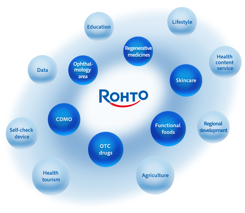 As of March 2023, our core areas of business are OTC drugs (over-the-counter drugs) and skincare. In line with the ROHTO Group Comprehensive Management Vision 2030, the business domain vision 2030 aims to grow the functional food business as the third pillar of our core domain. We are also focusing on medical ophthalmology, regenerative medicine, and contract development and manufacturing (CDMO) as business expansion areas.