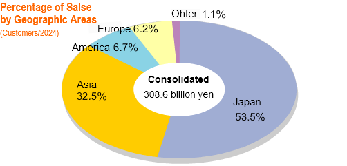 Net Sales (April 1, 2024 - March 31, 2025) (Millions of yen) Fiscal year ended Mar. 31, 2024 Fiscal year ended Mar. 31, 2025 Reportable Segment Japan 156,851 164,988 Asia 78,751 100,336 America 18,565 20,769 Europe 13,884 19,163 Others 2,786 3,366 Total 270,840 308,625