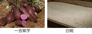 使用している紫芋は、鹿児島県種子島の在来種である希少な一吉紫芋。※1色鮮やかな紫芋にはアントシアニンが含まれています。国産米と、米糀は鹿児島県の醸造メーカーである薩摩酒造株式会社が作る生の「白糀」を使用