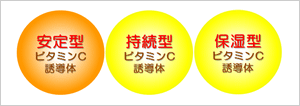 ※2:テトラヘキシルデカン酸アスコルビル(安定型ビタミンC誘導体)、アスコルビルグルコシド(持続型ビタミンC誘導体)、グリセリルアスコルビン酸(保湿型ビタミンC誘導体)