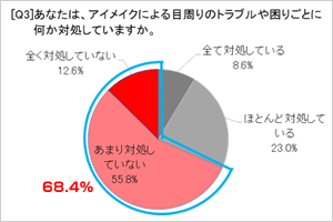 アイメイクをすることによって、目周りに対してトラブルや困りごとを感じている人は全体の83.7%にも上ります。