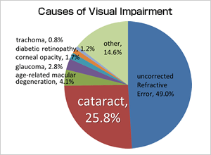 25.8% suffer from visual impairment due to cataracts. Cataract is the leading