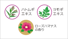 また、心やすらぐローズハマナスの香りで、気持ちよくケアしていただけます。