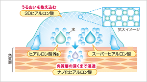 ※4:4種のヒアルロン酸:ヒアルロン酸クロスポリマーNa(3Dヒアルロン酸)、アセチルヒアルロン酸(スーパーヒアルロン酸)、ヒアルロン酸Na、加水分解ヒアルロン酸(ナノ化ヒアルロン酸)