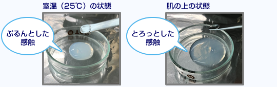 形状復元タイプの弾力あるゲルですが、肌の上ではスルッと伸びるゲルに変化します。肌になじませた後は、ハリ肌サポート成分※3(うるおい成分)がピタッと密着。こだわり処方でハリ肌が続きます。