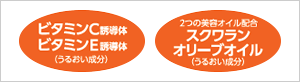 肌の乾燥が気になるお客様のことを考え、ビタミンC誘導体※1とビタミンE誘導体(うるおい成分)※2を配合。