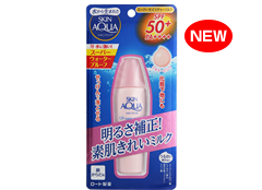 ピンクカラーと微細パールで、肌の色ムラ・くすみをカバーし、血色感をあげる、ミルクタイプの日やけ止め。