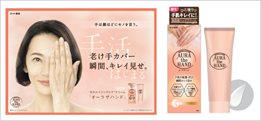 ロート製薬株式会社(本社:大阪市、社長:杉本雅史)は、年齢を重ねるにつれて、血管浮きや乾燥などで老けて見える手肌に悩む女性に向けたハンドクリーム、「メンソレータム®オーラ ザ ハンド」を2019年8月31日(土)に全国のドラッグストアを中心に新発売いたします。本品は、うるおい効果に加えて手肌の乾燥や凹凸も塗った瞬間キレイ見せさせる「トーンアップ機能※1」を持つ、新しいエイジングケア※2ハンドクリームです。人目に触れやすく年齢を表すと言われている手元だからこそ、ケアをして自信を持ってもらいたい。「手活」によって手の見た目が変わることで所作までもが美しくなり、オーラがみなぎる女性を応援します。