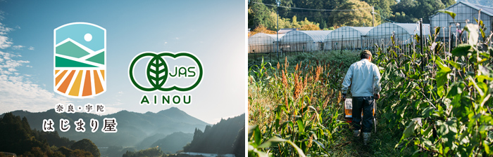 当社は「薬に頼らない製薬会社」を目指し、2013年からはアグリファーム事業部を立ち上げ、奈良県や沖縄県で一次産業に取り組んでいます。はじまり屋は2014年より当社の創業者の出生地である奈良県宇陀市内にて農業を開始しました。豊かな土地と気候に恵まれた宇陀の地で、リーフレタスやベビーリーフなどの葉物野菜を主力にニンジン、玉ねぎ、ナスなどを作ると共に、これからの未来の社会のためにできる限り環境にも優しく、またお客様の健康に食からも貢献できるよう取組んでいます。これにより、有機パイナップルを栽培する農業生産法人・有限会社やえやまファーム(沖縄県石垣市)に続き、有機JAS認定を持つ子会社は2社目になります。ひとりひとりを、社会を、より健康にしていくために引き続き取り組みを行ってまいります。