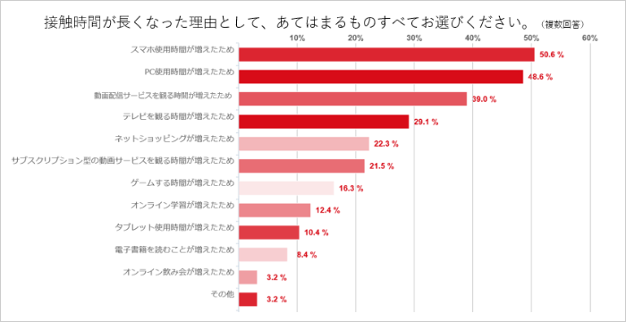 デジタル機器接触時間が伸びた理由は「スマホ」「PC」「動画配信サービス」