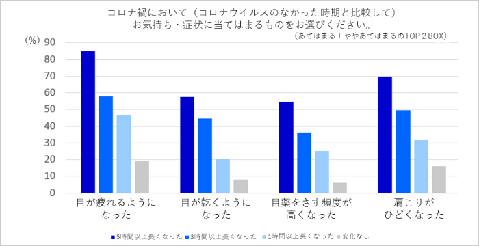 デジタル機器接触時間が長くなった人ほど、目のお悩みは深刻に