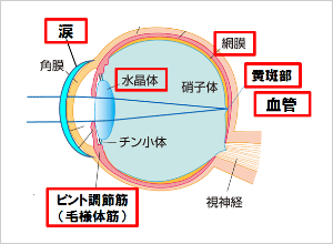 目の見る力には5つの部位(網膜、毛様体筋、水晶体、角膜、血管)などが関わっており、年齢を重ねる、生活習慣などが原因で機能が低下し、物が見えにくくなることもあります。その中で網膜は映像を映し出すスクリーンのようなもので、特にものを見るために大切な「黄斑部」は、ルテイン、ゼアキサンチンという黄色の色素によってダメージから守られています。加齢などによって黄斑色素が減ると、紫外線やブルーライトのような外的刺激により網膜がダメージを受けやすくなります。一度、目の健康にも目を向け、目の健康診断を受けてもよいですね。