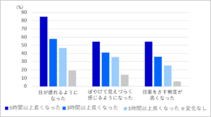 デジタル機器接触時間が長くなった人ほど、目の悩みはさらに深刻に