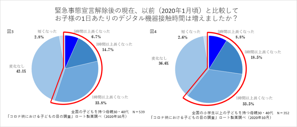 約55%の家庭では子どものデジタル機器接触時間が長くなった