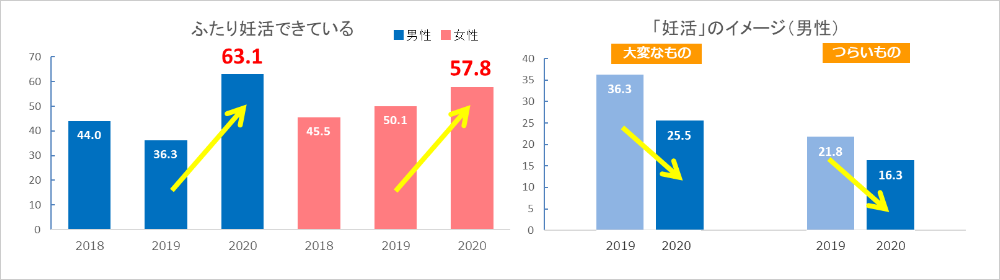 男性が感じている「妊活」についてのイメージも、「つらい」「大変」というイメージが減りました。より前向きに妊活を捉えだしているようです。