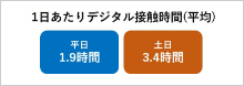 また平日・土日それぞれの1日あたりデジタル接触に関する平均時間は、平日1.9時間、土日3.4時間であることがわかりました。