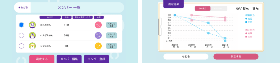 そのほかに、定期的な測定を促す通知機能や身近な目の疾患について簡単に解説したページも備えています。