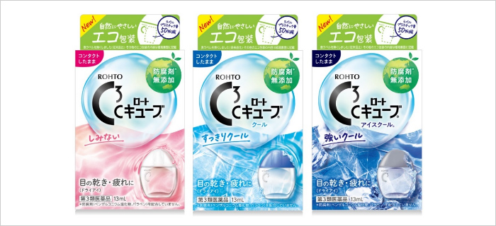 Cキューブ®」はコンタクト用目薬として1995年に誕生し、「コンタクト装着時のうるおい」にこだわりながら、コンタクトを装着する多くのお客さまにご支持いただくブランドになりました。お客さまのお声に耳を傾けながら研究を重ねてきましたが、今回も研究で培った成果をもとに処方をリニューアルいたします。さらに、生活のあらゆるところで環境への配慮や工夫を行われるようになるなかで、医薬品としての効果効能はそのままに、目薬のラベルや紙の使用量を削減することで、環境にもやさしい商品としてリニューアルをいたします。従来品と比較し、使い勝手は変わらずに、商品を購入してから使い終わって捨てるまでの行為を通じて、より環境への配慮を行える仕様になりました。これからもお客さまのお声に耳を傾けながら、未来の社会にもやさしい商品づくりを行っていきます。