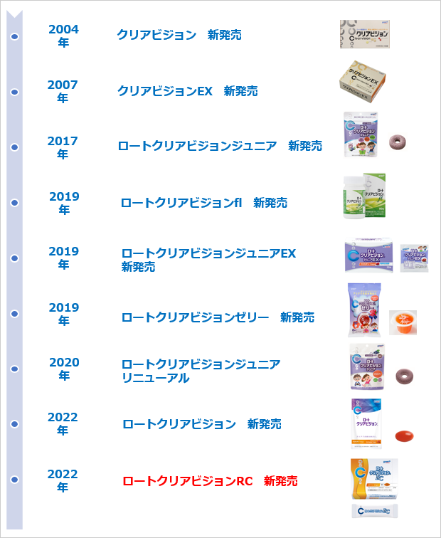 ロート製薬は人々を健康にしたいという思いから100年以上目と向き合い、大学や医療機関とともに様々な研究に取り組んできました。そのような思いを土台として、2004年に「クリアビジョン」が誕生。目まぐるしく変化する環境の中でも、生涯にわたってクリアな毎日を過ごしてほしい。人々の明るいビジョンを守りたい。そんな想いを込め、エビデンスのあるこだわりの成分を配合し、お子様から大人までさまざまな形で手に取っていただける商品のご提案を行ってきました。