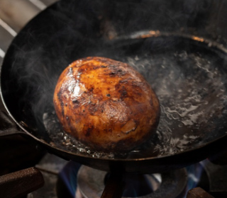 石垣島でパイナップルを食べて育つ「南ぬ豚」は柔らかな肉質に甘みが特長で、丁寧に網脂で巻くことでジューシーな旨味を閉じ込めた一品。にんにくと黒胡椒が味を引き立てます。 |