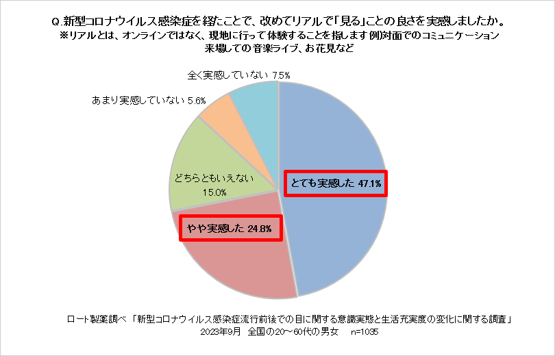 全体の7割以上が、リアルの場で「見る」ことの良さを実感したと回答
