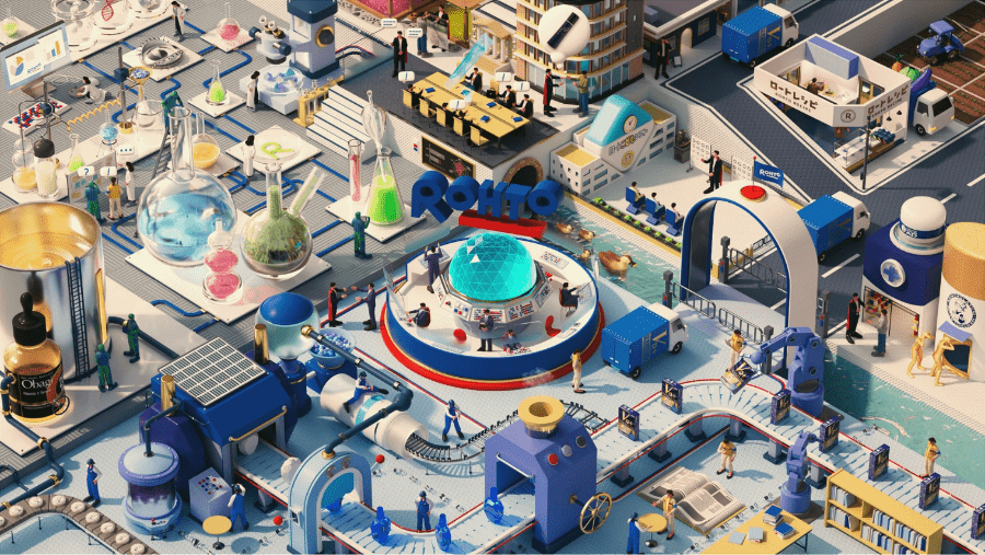 当社では、ジョブローテーションや社内Wジョブ(兼業)、社外チャレンジワーク(複業)など、一人ひとりのキャリアも多様な広がりがあることが特徴です。エントリー時には、入社から5年前後をイメージし、スキルを磨き、最初の一歩を踏み出す領域として6つの「フィールド」を設定しました。採用サイトでは、各フィールドのメンバーが互いに対話を重ねながら社会と繋がっていく様子を、「ロートタウン」という空間の中で表現しています。業務内容や思考性を踏まえ、まずはどのフィールドから一歩を踏み出すかを考え選択したうえで、エントリーいただきます。