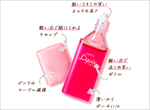 独自開発した新容器の目薬で、極小の一滴を実現。瞳から溢れにくいので、メイク崩れを軽減。さらに、どんな角度から点しても極小の一滴が点眼可能な「フリーアングルノズル」を採用しています。