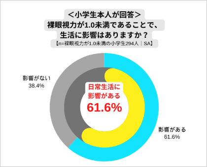 - 裸眼視力低下によって61.6%が「授業で黒板が見えにくい」など生活に影響がある