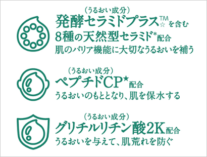 「セラミドバリアケア®※2」:8種の天然型セラミド*(うるおい成分)を配合。