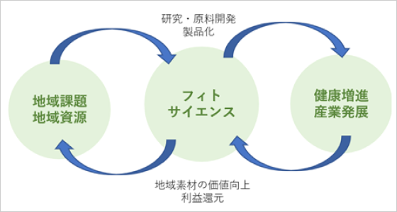 「フィトサイエンス構想」は、こうした社会課題解決と、地域の自然素材や技術を生かした健康産業の発展を目指す新たな事業戦略です。これまでの経験を元に、改めて自然界に存在する素材の活性や機能(フィトパワー)に着目。そのパワーの根源となる地域独自の気候や土壌、資源、技術等を最先端のサイエンスで解き明かすことで、フィトパワーの価値や可能性を拡げ、持続可能な形で、社会に還元することを目指します。