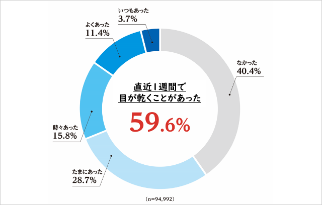 59.6%の人が「あった」と答えており、多くの人が目の不快感を抱えながら日常を過ごしていることがうかがえます。