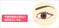 角膜幹細胞は角膜上皮細胞に成長する(分化する)元になる細胞で、角膜と結膜の境界部(輪部)に存在しており、日々新しい角膜上皮細胞を生み出し、角膜上皮層の正常なターンオーバーや恒常性維持に重要な役割を果たしています。角膜幹細胞がダメージを受ける主な原因は外傷によるものですが、加齢とともに増える体内の酸化ストレスや抗酸化力の低下も原因の1つであると考えられています。