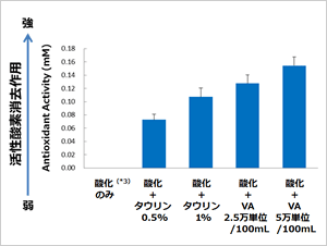試験方法:酸化剤(tBOOH)とタウリン又はビタミンAを混合し、化学発光法による測定方法にて、各成分の活性酸素消去作用を測定した。