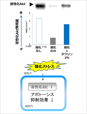 結果3:タウリンは酸化ストレスで低下するアポトーシス抑制因子(活性化Akt)を増加させる