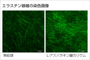 L-アスパラギン酸カリウムがエラスチン線維形成に及ぼす作用について検討しました。その結果、L-アスパラギン酸カリウムはエラスチン線維形成を促進することが分かりました。