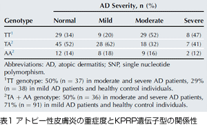 - 日本人のアトピー性皮膚炎の重症度とKPRPの遺伝子型に有意な相関があることが示された