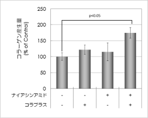 「ナイアシンアミド」と「コラプラス」の併用によるコラーゲン産生作用の向上
