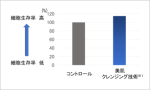 また本技術は一般的なクレンジング技術に比べて使用後の肌水分量が有意に高くなることを確認しました(図2)。