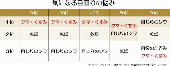 ロート製薬株式会社(本社:大阪市、社長:杉本雅史)は医療法人財団青輝会アオハルクリニック(東京都港区六本木、院長:小柳衣吏子)との共同研究により、目元のクマ症状に関してその分類と年代別の推移を検討したところ、クマとして認識される症状は年代によって変化することがわかりました。