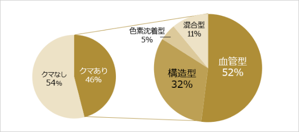 クマ症状ありと判定されたのは46%。最も多いのは「血管型」で、次いで「構造型」、「色素沈着型」の順でした。