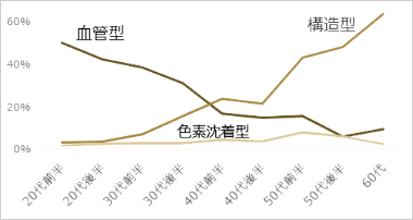 「色素沈着型」はどの年代にも一定の割合はありますが数としては少なく、年代との相関は認められませんでした。