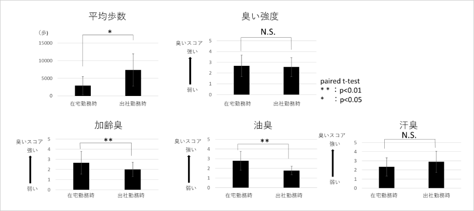 在宅勤務時の方が出社勤務時と比べ、加齢臭と油臭が有意に強くなることを確認