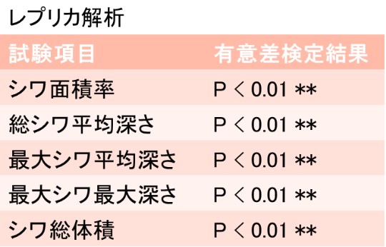 30~59歳の女性23名に自宅で試験品を8週間使用後、外部試験機関で各項目の測定を行った。