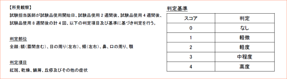 浸透をコントロールする技術を搭載した試験品のクリームで8週間連用試験を実施しました。シワのレプリカ評価の結果、塗布前後の比較で目回りのシワへの効果が認められました(図4)。また、皮膚科医による医師所見の結果、試験期間中に所見スコア2(軽度)以上の症状はなく、試験品による重篤な皮膚トラブルはありませんでした(図5)。以上の結果から、効果と安全性を両立していることが示唆されました。