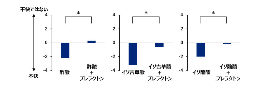 結果3:プレラクトンによって悪臭成分の不快度が減少することを官能評価にて確認