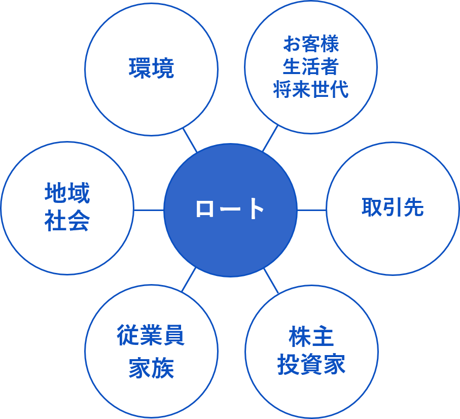 当社は、経営理念、価値行動規範(7つの宣誓)、各種方針等に基づき、生活者、取引先、従業員、株主・投資家、地域社会など全てのステークホルダーの皆様と協働し、Well-beingな社会の実現に向けて社会的責任を果たすとともに、企業価値の向上に努めます。