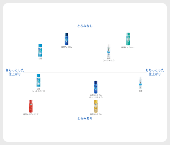 ロート製薬に実際にお寄せいただいたお客様の声を元に、製品を改良させていただいた事例をいくつかご紹介いたします。 メンソレータム リップフォンデュ クリア お客様の声に応えて、クリア色が再登場しました お客様の声2022年に「メンソレータム リップフォンデュ… このように改善しました 肌ラボ 「化粧水 使用感マップ」をブランドサイトに公開しました お客様の声乾燥肌なので化粧水を購入するなら「しっとり… このように改善しました リグロEX5エナジー より使いやすいノズルへ変更しました お客様の声塗る位置を移動しようとすると、液だれして額… このように改善しました スキンアクア 「落とし方」をボトル本体にも記載しました お客様の声パウチには洗浄料で落とすようにと書いてあり… このように改善しました 50の恵 養潤クリーム、50の恵 朝の紫外線対策クリーム 内フタの取り外し方をフラップに記載しました お客様の声中フタが挟まっていて、押しても中フタがとれ… このように改善しました オバジC デイセラムUV、オバジC デイセラムBB 「洗顔料で落とすことができますか?」をブランドサイトの【よくあるご質問】に公開しました お客様の声石鹸で落ちますか?それともオイルクレンジン… このように改善しました オバジC 酵素洗顔パウダー、オバジC 酵素洗顔パウダーDP 毎日使えることを外箱に記載しました お客様の声洗顔後は肌がツルンとして、その後の化粧水の… このように改善しました なみだロートファイブ 「紙箱内側の有効活用で紙削減」と「箱で目薬を保管したいニーズ」を両立 お客様の声説明書が箱の内側に印字された目薬を使ってい… このように改善しました メンソレータム メディクイックH ゴールド(スポンジヘッド) スポンジの強度を改善しました お客様の声まだ液が1/3ほど残っているがスポンジが今にも… このように改善しました 肌ラボ 極潤パーフェクトゲル(濃極潤) 容器を変更したことで開閉時の回転数を削減しました お客様の声キャップを閉めるのに8~10回くらいクルクル回… このように改善しました ロートアルガードこどもクリア 使用年齢を分かりやすくしました お客様の声使用年齢が詳しく載っていないため何歳から使… このように改善しました 50の恵 頭皮いたわりカラートリートメント チューブのノズルを細長くしました お客様の声大事なのは生え際にたっぷり塗れることなので… このように改善しました デ・オウ 薬用クレンジングウォッシュ 剥がしやすいPOPシールに変えました お客様の声シールの粘着力が強く、はがした跡がベタベタ… このように改善しました プロメディアル モイストオイルハンドクリーム 出しやすいよう、ノズルの直径を広げました お客様の声初めて買いましたが、クリームが硬くて、チ… このように改善しました メンソレータム ディープモイスト リップクリームの出し方を書きました お客様の声初めて買いましたが、使い方がよく分かりま… このように改善しました メンソレータム ADクリームm ユニバーサルデザインを取り入れた新パッケージへ お客様の声母が新しい製品を開けたらしいのですが、硬… このように改善しました 肌ラボ 極潤プレミアム ヒアルロン液 使いやすさを意識した容器への変更について お客様の声トロトロの液なので傾けるだけでは出ず、ボ… このように改善しました メラノCC 薬用しみ 集中対策 プレミアム美容液 出しやすさの改善について お客様の声ギューッと握って、ようやく液が出るくらい… このように改善しました メラノCC 集中対策マスク 顔へのフィット感をアップさせました お客様の声メラノCC集中対策マスクは切れ目が多くて… このように改善しました メディクイックH頭皮のメディカルシャンプー 清涼感がない「しっとりタイプ」の追加発売について お客様の声昨夜は涼しかったので、髪の毛を乾かす時に… このように改善しました ケアセラ APフェイス&ボディ乳液 出しやすさを意識した容器への切り替えについて お客様の声お風呂場ですぐに使えるよう、ポンプ式にし… このように改善しました メンソレータム ハンドベールシリーズ “未開封”と分かるように変えました お客様の声このハンドクリームは、ビニールで巻いたり… このように改善しました デオコ 薬用ボディクレンズ つめかえ用パウチ つめかえ用の注ぎにくさ改善について お客様の声つめかえ用は注ぎ口の穴が小さく、詰め替えが… このように改善しました デオコ シャンプー・コンディショナー発売のご要望について お客様の声「デオコ」のボディクレンズを使って感動し… このように改善しました ロートクリア 目薬容器 開封日の記載欄について お客様の声以前に買った目薬が出てきたが、箱を捨てた… このように改善しました 目薬(「Vロートプレミアム」シリーズなど) コンタクト装用中・裸眼時の点眼可否の表示について お客様の声この目薬はソフトコンタクトレンズをしたまま… このように