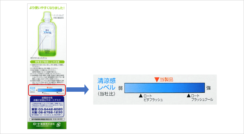 商品名: 洗眼薬全般 清涼感の違いについて お寄せいただいたご意見 洗眼薬を選ぶとき、清涼感の高いものがどれかわからない。商品に表示してもらえないか? 40代女性 ほか 清涼感レベルを当社比でシリーズ毎にバーグラフで表現し、外箱に表示致しました。 一覧へ 前のページへ 次のページへ