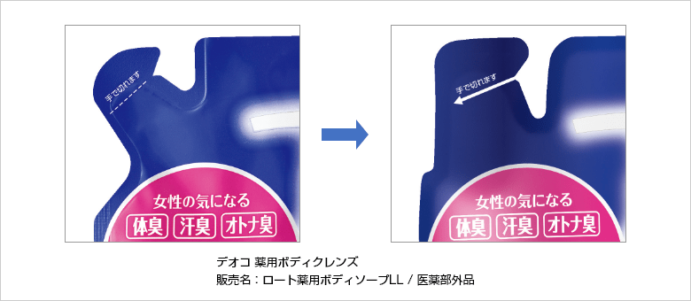 商品名:デオコ 薬用ボディクレンズ つめかえ用パウチつめかえ用の注ぎにくさ改善について お寄せいただいたご意見 デオコ 薬用ボディクレンズを愛用しています。 つめかえ用は注ぎ口の穴が小さく、詰め替えがうまく出来ません。毎回ハサミで注ぎ口の穴を広げています。 もう少し詰め替えやすくなりませんか? 女性のお客様 以前のつめかえパウチの形状では、液が糸状に細く出ることで、詰め替えに時間がかかることがありました。 そこで、注ぎ口を大きくして液を出しやすくし、スムーズに詰め替えられるように改善しました。 中身だけでなく使い勝手も良いと感じていただけるよう、今後もお客様の声を活かしていきます。 ※2021年時点の活用事例です。リニューアル等によりデザインや表記が変更になることがあります。 一覧へ 前のページへ 次のページへ